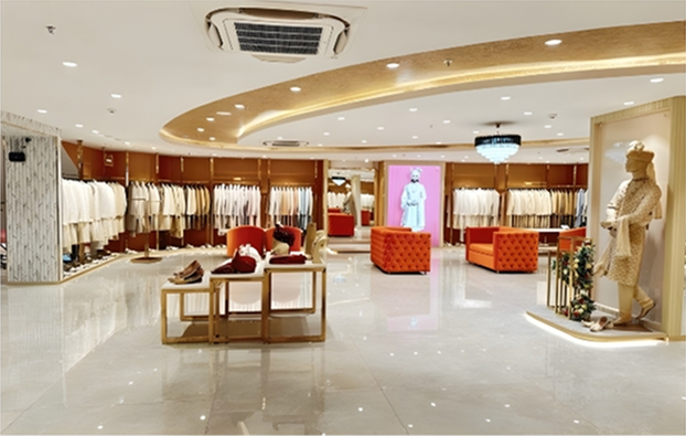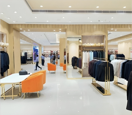 For the Manyavar Mohey store, we designed a sophisticated and inviting interior that complements the brand’s rich heritage and modern style. From premium lighting to detailed wall finishes and display setups, every element was curated to reflect opulence and comfort. Our decoration and interior work aimed to create a seamless shopping experience that resonates with the elegance and grandeur Manyavar Mohey represents.